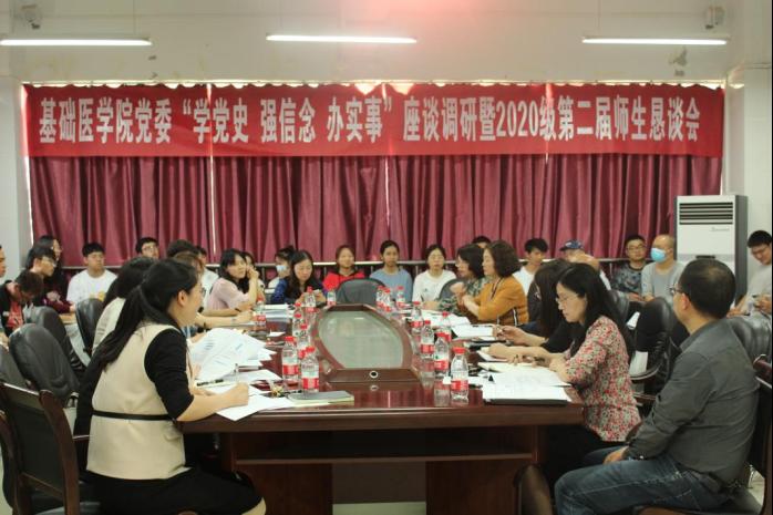 为解决学生实际问题,服务学生成长成才。5月12日,基础医学院党委在务本楼W201召开“学党史 强信念 办实事”座谈调研暨2020级第二届师生恳谈会,教务处处长温小军,学工部(学生处)处长王韬,后勤管理处党总支书记张玲玲、党总支副书记周云蓉,校团委宣传部陈卫娅,大学生心理健康教育与咨询中心李雪萍,基础医学院党委副书记王妤煜、副院长徐红、副处级组织员刘亮、各职能科室负责人、各教研室主任、辅导员及2020级学生代表参加,会议由2020级年级主任宋渊丰主持。