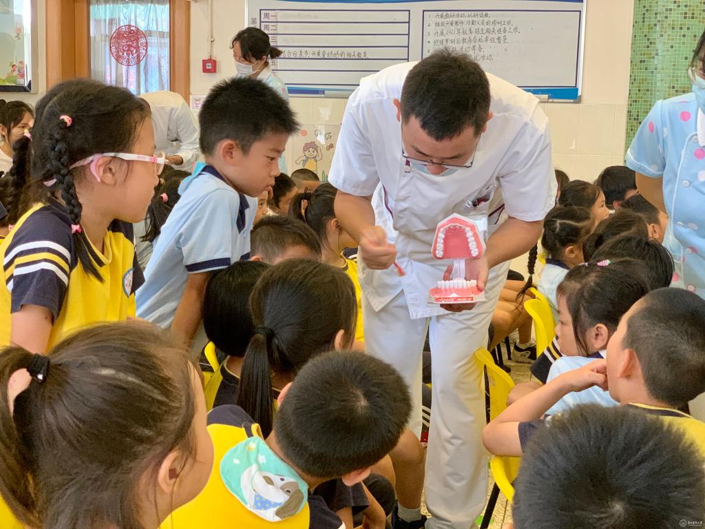 随后,口腔MDT多学科科普医护团队通过牙模型示范正确的刷牙方法,并指导小朋友进行练习演示。在寓教于乐的氛围中,让孩子们重视口腔卫生,懂得如何有效地保护牙齿。