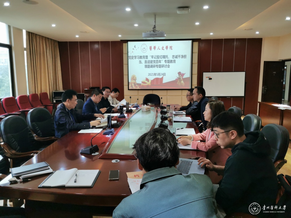 5月24日,医学人文学院召开党史学习教育暨“牢记殷切嘱托、忠诚干净担当、喜迎建党百年”专题教育领题调研专题研讨会,学院党委班子成员、各科室(中心)负责人、各党支部书记参加,学院党委副书记张健主持。