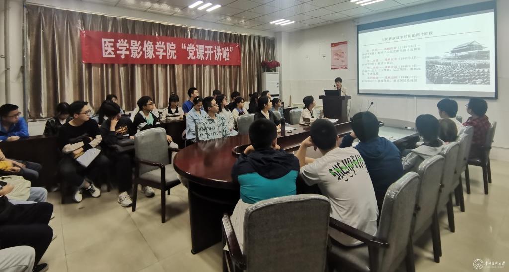 5月25日,医学影像学院党委开展党史学习教育专题党课。本次党课由院党委书记李雪梅主讲,院党委副书记姚琨主持。学院班子成员、教职工党支部全体党员、学生党支部全体党员以及入党积极分子参加。