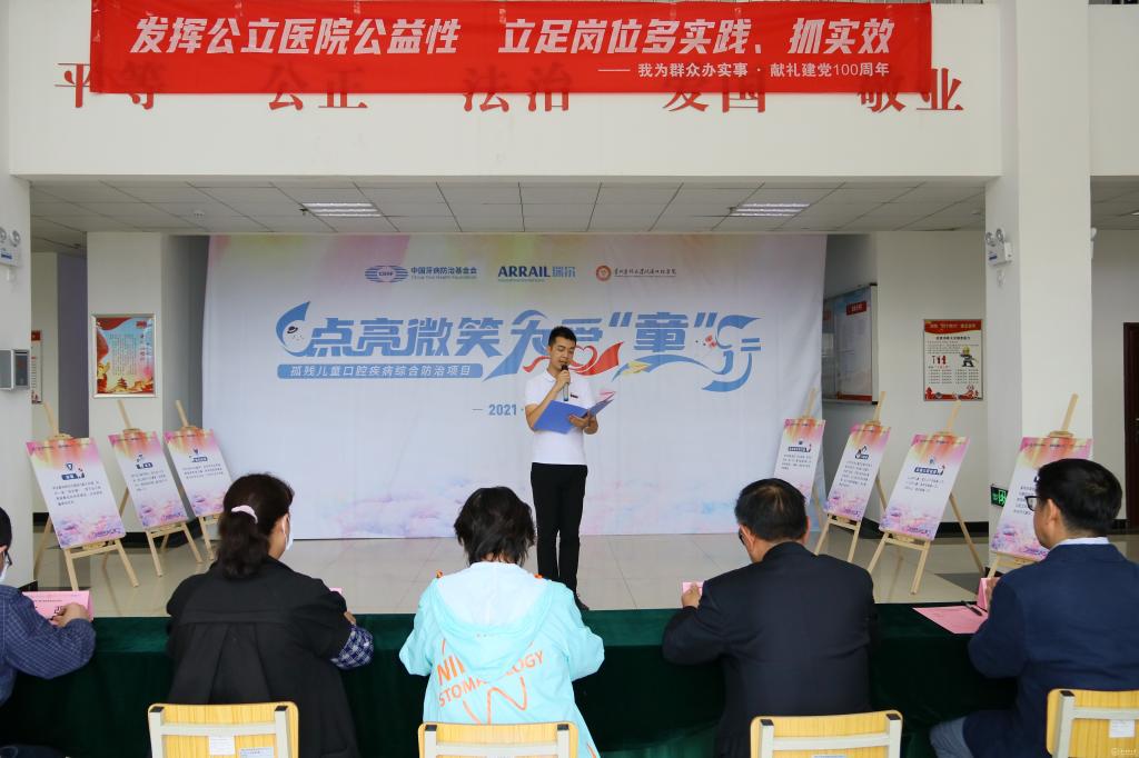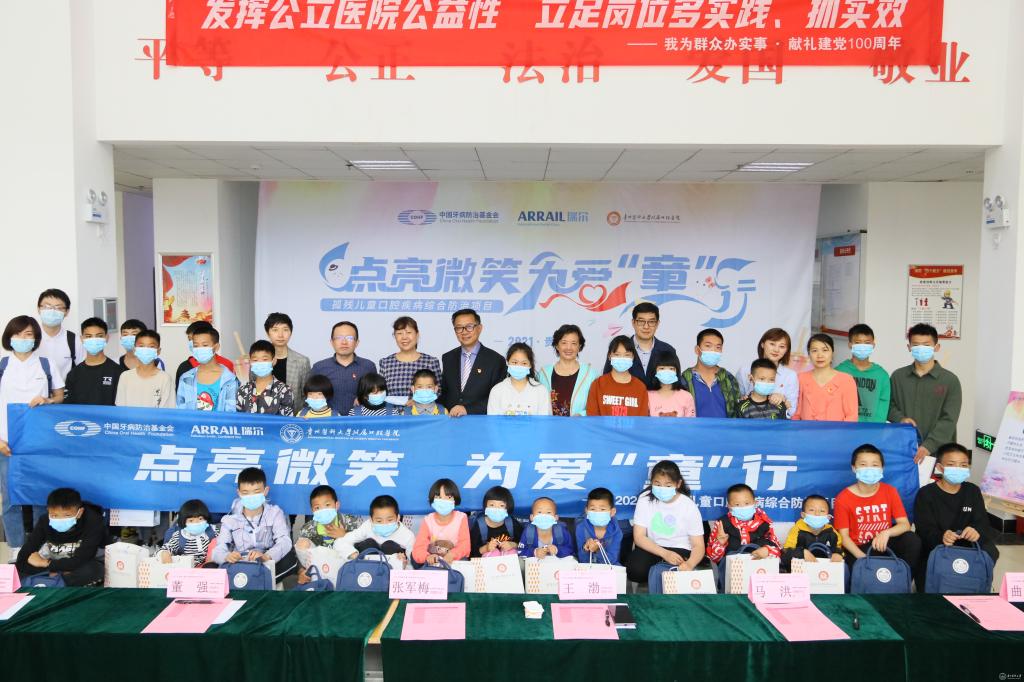 5月28日,“中国牙病防治基金会2021年孤残儿童口腔疾病综合防治项目”正式在贵州启动,awc777万象城娱乐官网附属口腔医院(以下简称口腔医院)负责贵州地区该项目的具体实施。口腔医院党政领导高度重视此次活动,由班子成员带队赴贵阳市救助站完成项目启动仪式的落地和该项目第一次救助活动的具体实施,为贵阳市儿童福利院孤残儿童送去“口腔健康”及人文关怀。口腔医院党委书记张军梅和党委副书记、院长马洪出席启动仪式并致辞;中国牙病防治基金会副秘书长王渤、瑞尔集团副总裁兼首席运营官曲勃出席活动并讲话。