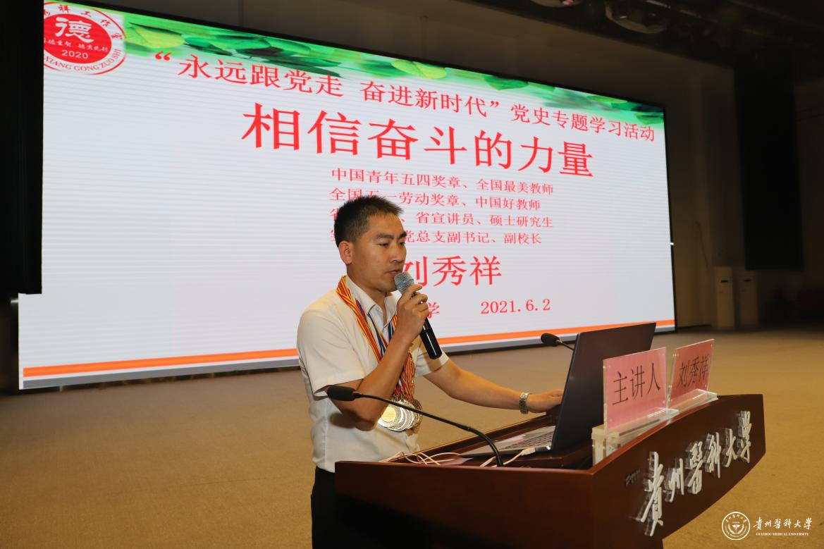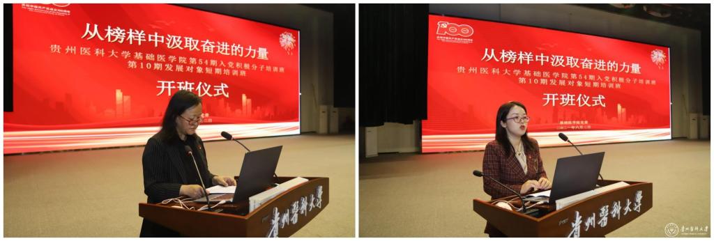 6月2日,基础医学院党委在南校区礼堂举行“从榜样中汲取奋进的力量”为主题的师德师风教育讲座暨第54期入党积极分子培训班、第10期发展对象短期集中培训班开班仪式。贵州省望谟县实验高中党总支副书记、副校长、省级名师工作室主持人刘秀祥,贵州省贵阳市白云区第三中学盲人教师、中国盲人协会文学委员会秘书长刘芳,awc777万象城娱乐官网党校常务副校长、党委组织部副部长李红,基础医学院党委书记王妤煜,基础医学院副院长张春林、徐红、舒莉萍,副处级组织员刘亮,党支部书记、师生党员、辅导员、近两年新入职青年教师、第54期入党积极分子、第10期发展对象及各班学生代表等1000余人参加,开班仪式由基础医学院党委副书记张贤主持。
