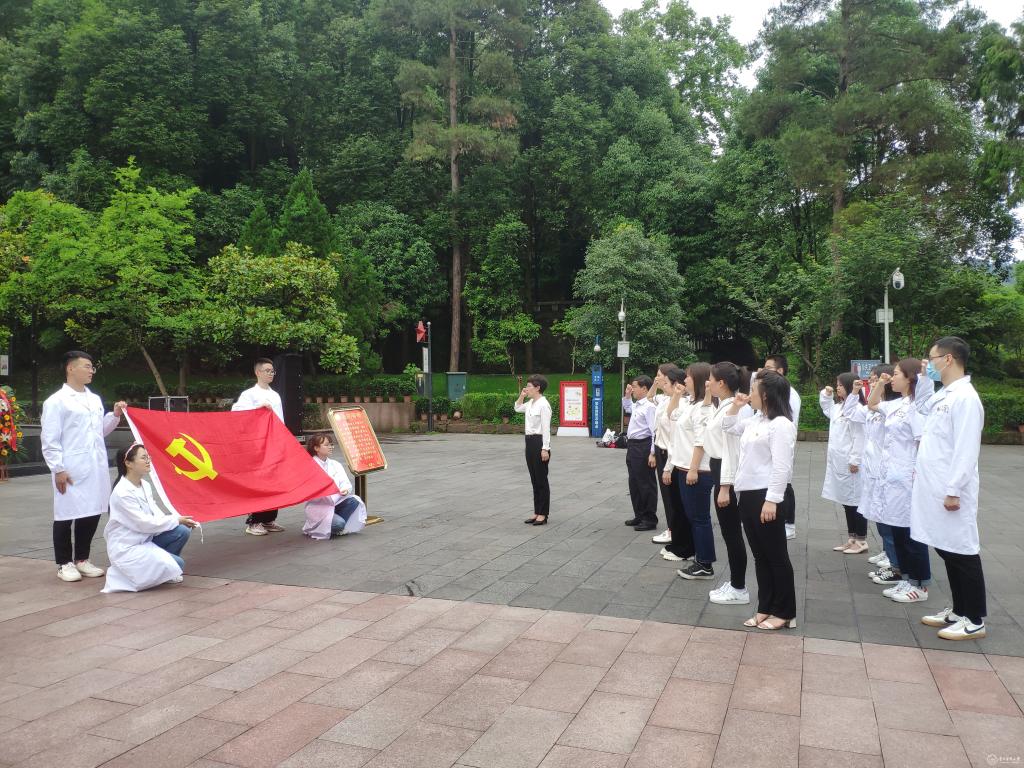 在红军山烈士陵园纪念碑前,院党委书记李雪梅带领全体党员面向党旗庄严宣誓,重温入党誓词。随后大家缓步绕行,瞻仰了“红军烈士纪念碑”“邓萍烈士之墓”“红军坟”“红军卫生员”雕塑等,重温那段战火纷飞的峥嵘岁月历史,接受红色思想的洗礼。