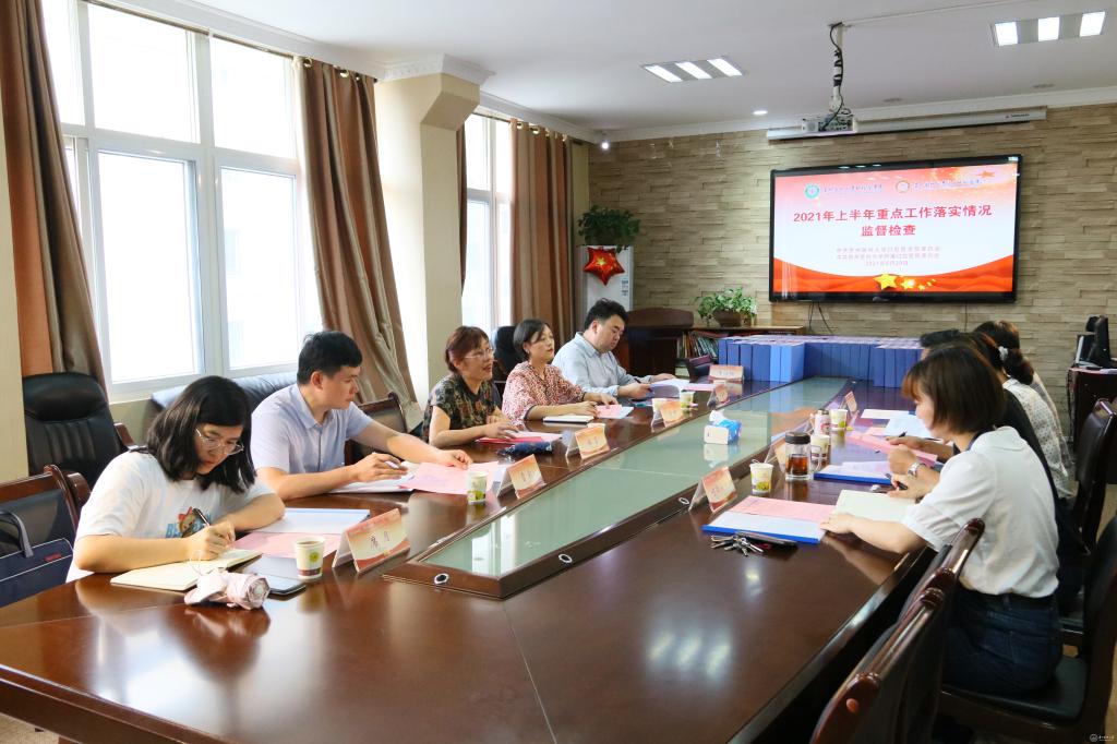 会后,检查组现场查阅了口腔医(学)院2021年上半年重点工作落实情况相关材料。