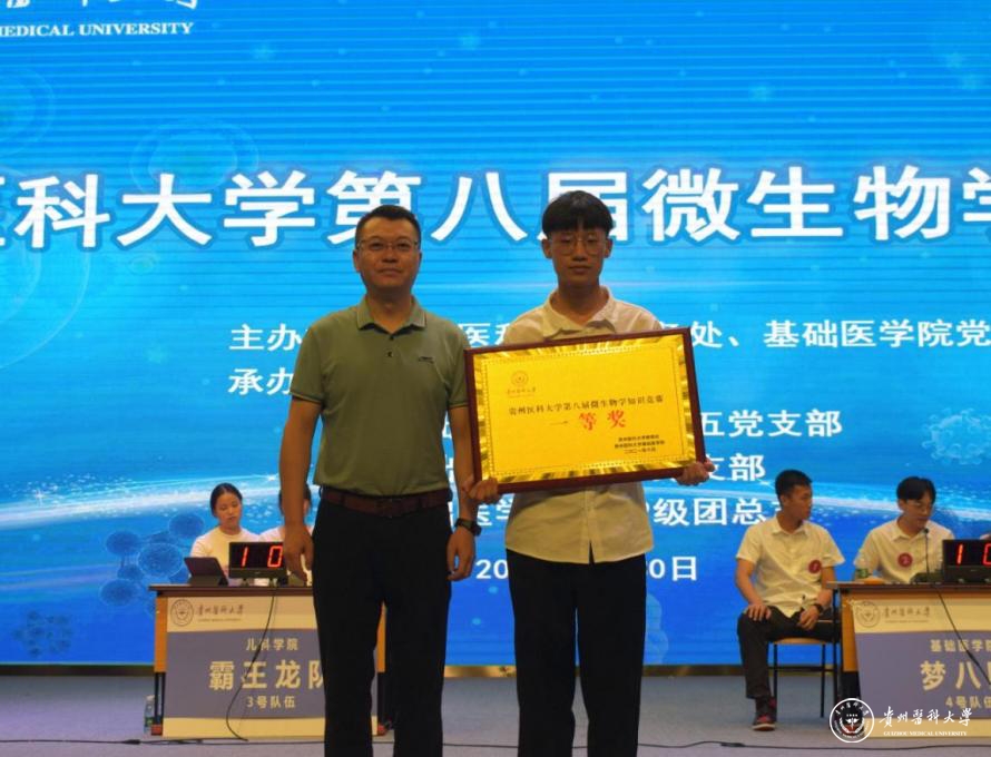 决赛包括独闯奇关、共度险关、勇闯难关三个环节。在互动环节现场师生参与答题,气氛活跃。经过选手们的激烈角逐。最终,基础医学院“高压蒸汽灭菌队”荣获团体一等奖,口腔医学院“微微一笑全都队”、基础医学院“梦八队”荣获团体二等奖,麻醉学院“麻风杆菌小分队”、儿科学院“霸王龙队”、基础医学院“微风凛凛队”荣获团体三等奖。来自于基础医学院“梦八队”的李云飞同学荣获优秀个人奖。