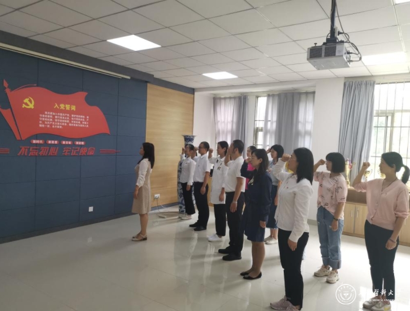 7月1日,基础医学院党委以支部为单位,组织党员重温入党誓词,共同庆祝党的百年华诞。