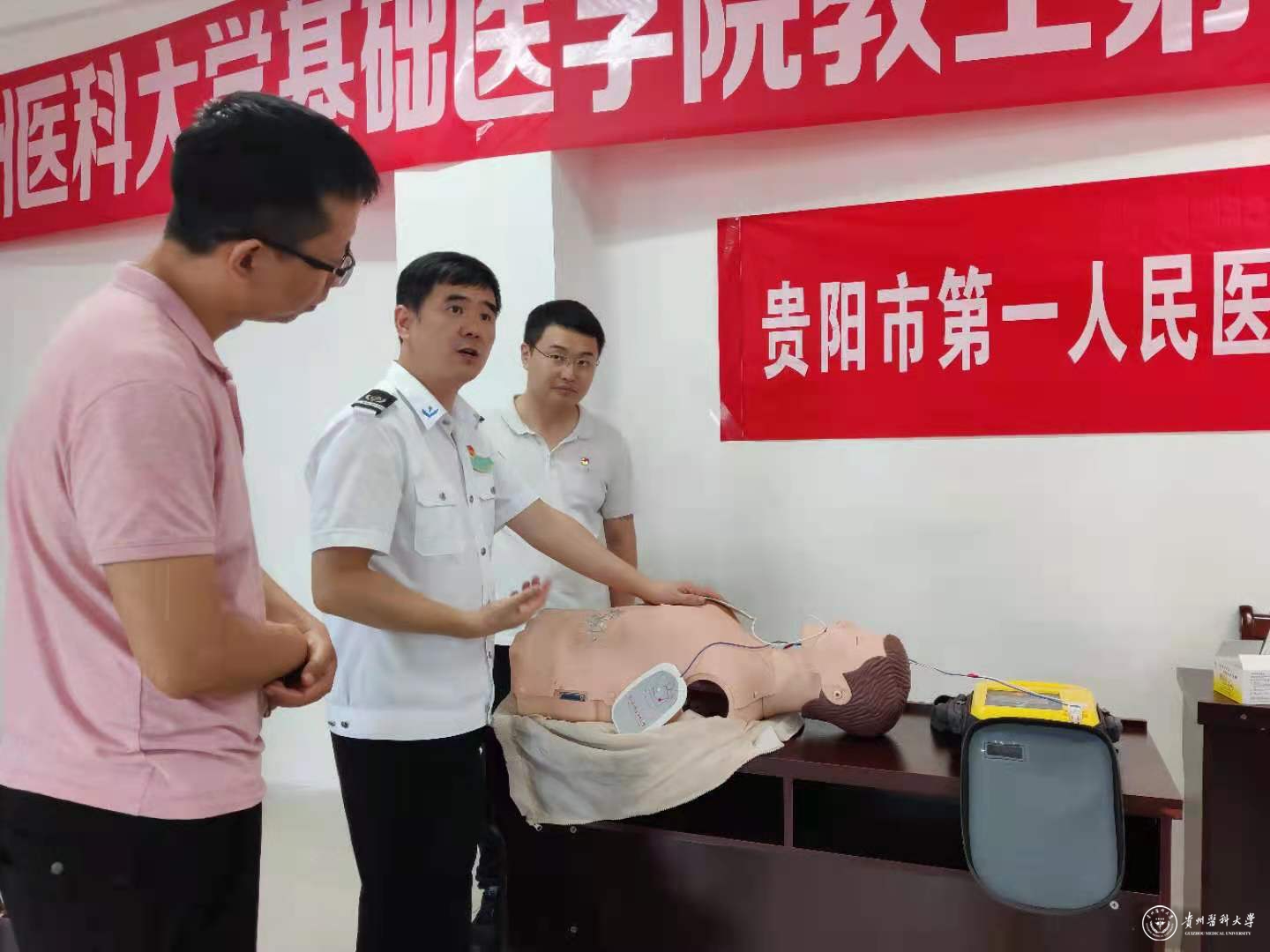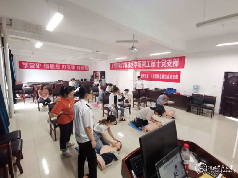 6月30日,基础医学院教工第十党支部邀请贵阳市第一人民医院急救综合党支部在务本楼W503室为基础医学院免疫学教研室师生进行急救培训主题党日活动。本次急救培训由贵阳市急救中心“现场急救行动指南”培训项目黄公澍、宋菁、邓宽超三位导师进行授课。基础医学院党委书记王妤煜、学报编辑部主任刘杰麟,教工第十党支部全体党员、免疫学教研室教师及研究生参加。