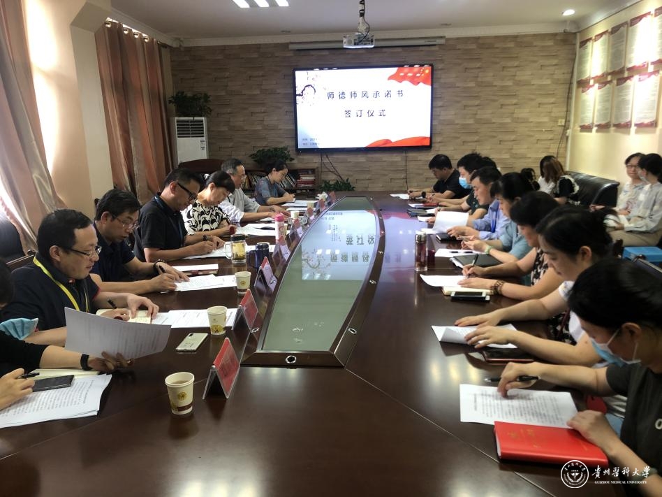 按照《awc777万象城娱乐官网教师师德承诺制度》要求,口腔学院组织各教研室主任及教师代表签订“awc777万象城娱乐官网教师师德承诺书”,各级教师由所在教研室组织签订。通过颇具仪式感的方式进一步增强广大教师的责任感、使命感、荣誉感,规范其职业行为,明确其师德底线。同时要求各教研室强化学习《新时代高校教师职业行为十项准则》,将准则打印粘贴至教研室办公区域的醒目位置,切实做到准则“上墙上心”。