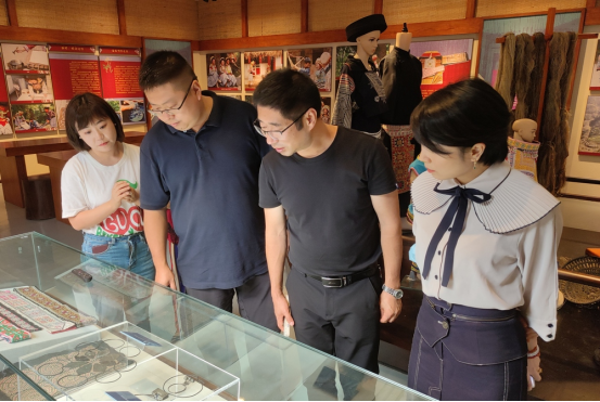 调研组调研少数民族文化传承、传统民族服饰发展情况,深入了解“四印苗”“银杏歌节”“观游村红军长征精神”等特色文化,并与“四印苗”省级非物质文化遗产传承人王毕荣交流,了解当地传统服饰的符号含义、功能用途,以及盛装、便装在不同人群穿着的讲究,服饰厂生产经营状况等。
