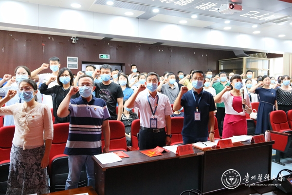 7月30日,口腔医(学)院在五楼学术报告厅举行“永远跟党走 奋进新时代”联合主题党日活动。院党委书记张军梅,党委副书记、院长马洪,副院长唐正龙,党委副书记何雨羲,教工党支部全体党员、入党申请人、入党积极分子及发展对象参加。本次活动由何雨羲主持。