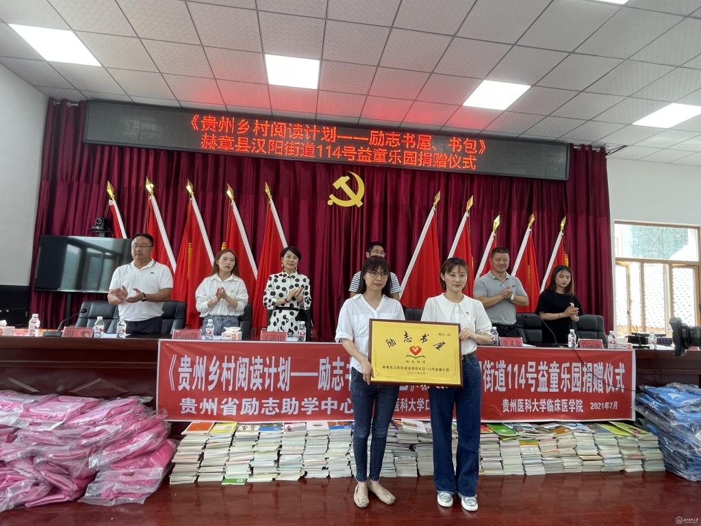 在贵州省励志助学中心的协助下,口腔医(学)院捐资2.5万的“励志书屋”顺利完成筹款并投入使用。贵州省励志助学中心与口腔医(学)院党委共同捐赠了价值45000余元课外图书1000册及书包100个,并向汉阳街道授“励志书屋”牌匾。上午11时,贵州乡村阅读计划“励志书屋”捐赠仪式在赫章县汉阳街道114号益童乐园举行捐赠仪式上,院党委副书记何雨羲表示,这是口腔医(学)院在努力提升医疗服务质量的同时,持续推动党史学习教育向广度深度拓展,积极投身社会公益,用心用情用力开展好“我为群众办实事”实践活动的体现。