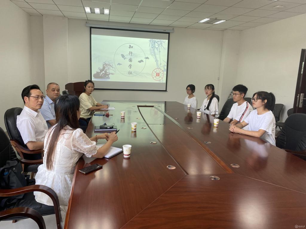知行国学社指导教师冯游游、龚红向调研组介绍了国学社的基本情况。国学社的同学们从国学社的成立、国学活动、人员结构、未来展望等四个方面汇报了社里的相关情况。陈代勇对国学社开展的工作及取得的成果给予肯定,国学社将医学与国学相联系,以培养同学们通过医学的“多学”,激发出对国学的兴趣,巩固同学们的专业思想,增强学习的动力,有力促进贵医的人文建设以及社团发展。大力以传统文化为轴心的一系列社团应当保持对传统文化的热爱,并举办优质活动更多同学参与。