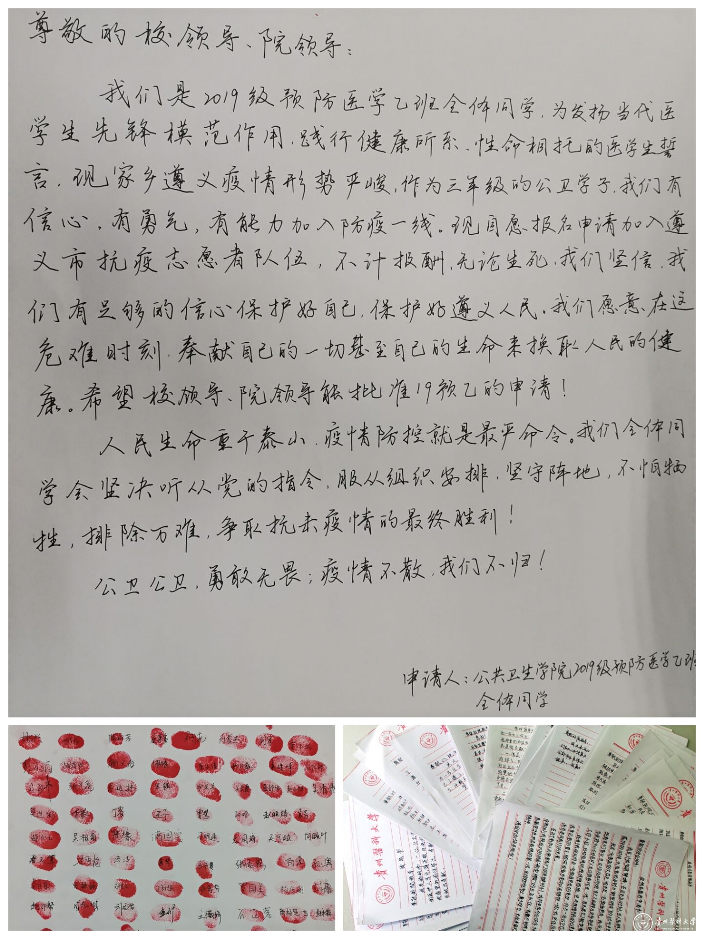 此外,还有多名公共卫生学院学子,纷纷递上请战书,请愿冲锋抗疫一线。