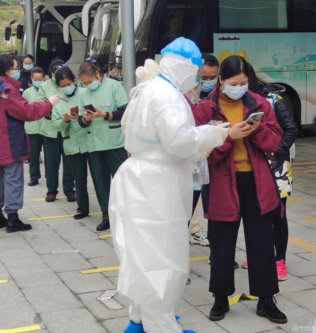10月18日, 遵义市汇川区发现首例新冠肺炎确诊病例,自10月23日12时开始,遵义市4个城区群众开展3轮全员核酸检测。公共卫生学院2017级预防医学专业张余、谯瑞,在遵义市疾病预防控制中心实习首例新冠肺炎确诊病例后,他们在第一时间奔赴现场,参与一线疫情防控工作。2018级预防医学专业学生王诗琪,临床实习结束返回遵义家中,因疫情滞留遵义,主动向遵义市红花岗区海龙镇贡米村村委会报名加入到防疫志愿者队伍中,主要负责核酸采集点的人员信息登记。