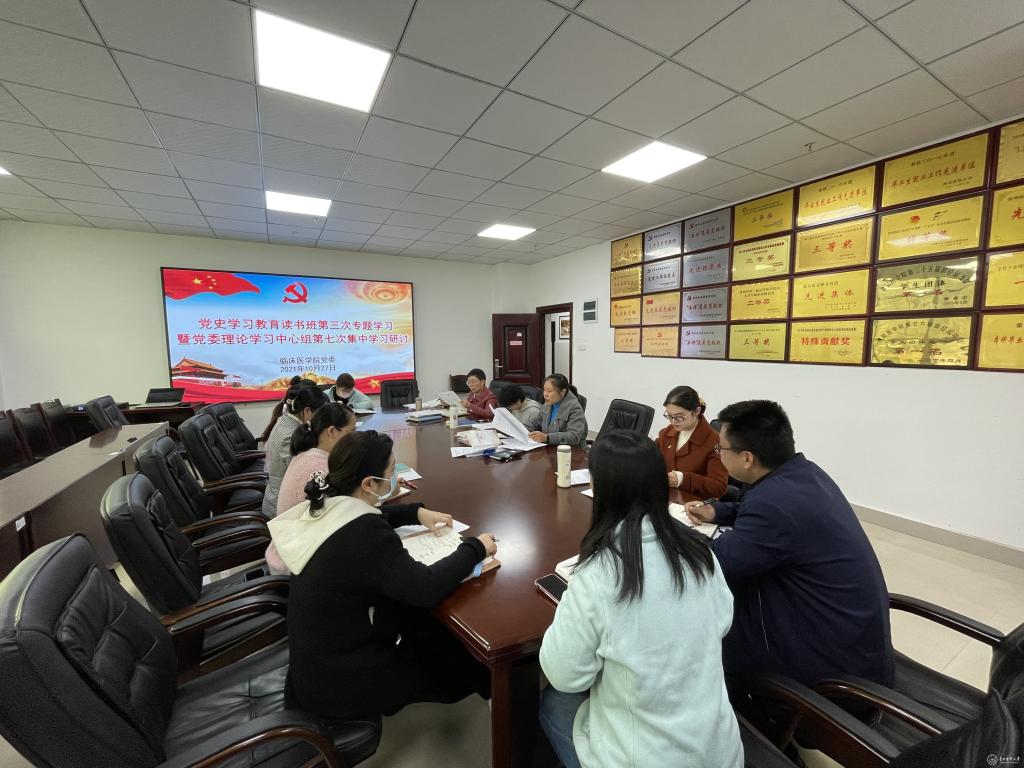 10月27日,临床医学院在会议室召开党史学习教育读书班第三次专题学习研讨暨党委理论学习中心组第七次集中学习。临床医学院班子成员及各职能科室成员参加会议,会议由院党委书记周红主持。
