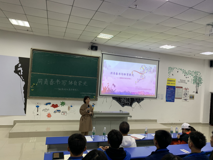 11月3日,运动与健康学院2019级社会体育指导与管理班级在广德楼1604教室举行了“用青春书写体育荣光,做新时代有为体育人”主题班会。校党委委员、党委宣传部(精神文明办)部长(主任)、统战部部长陈颖,院党委副书记陈庆,院学生管理科科长蔡啸,院户外教研室教师邓菊会受邀出席,班会由班级辅导员周小援、班级同学张海鹏主持。