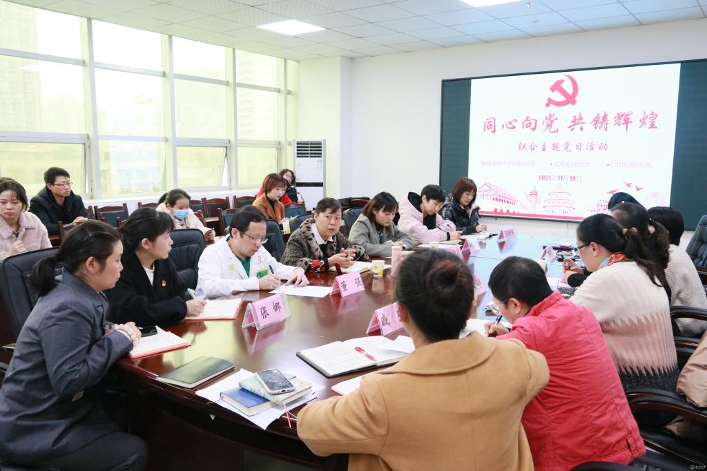 11月19日,临床医学院党委和口腔医学院党委以“同心共建、共铸辉煌”为题开展联合主题党日活动。此次活动在北校区举行,党委统战部副部长任婷出席活动;临床医学院党委书记周红、副书记王筑山、副院长戚璐、教工党支部和2019级研究生第二党支部全体党员;口腔医学院党委书记张军梅,院党委副书记何雨羲,统战委员董强,纪检委员郑慧颖,院党委办公室主任张娜、院长办主任马绮阳和各基层党支部统战委员参加本次会议。会议由周红主持。