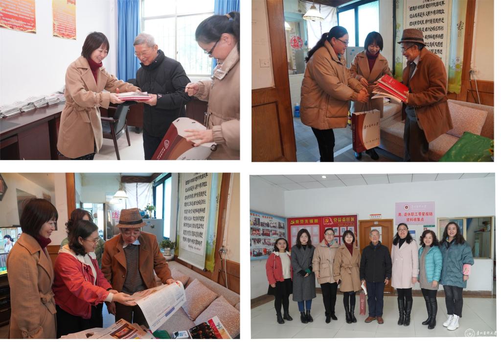 为深入开展党史学习教育,扩大党史学习教育覆盖面,满足离退休教职工文化生活需求,11月24日,宣传与统战党支部与离退休工作处党总支在职党支部结对开展了“我为群众办实事”之“送书送学”主题党日活动,向离退休党支部捐赠党史学习教育书籍,设置校报浏览角,并为不便出门的退休老同志送书送学上门。校党委委员、党委宣传部(精神文明办)部长(主任)、党委统战部部长陈颖,离退休工作处党总支书记、处长张雪晴,党委统战部副部长任婷,离退休工作处副处长刘梅华出席,宣传与统战党支部、离退休工作处党总支在职党支部党员参加。
