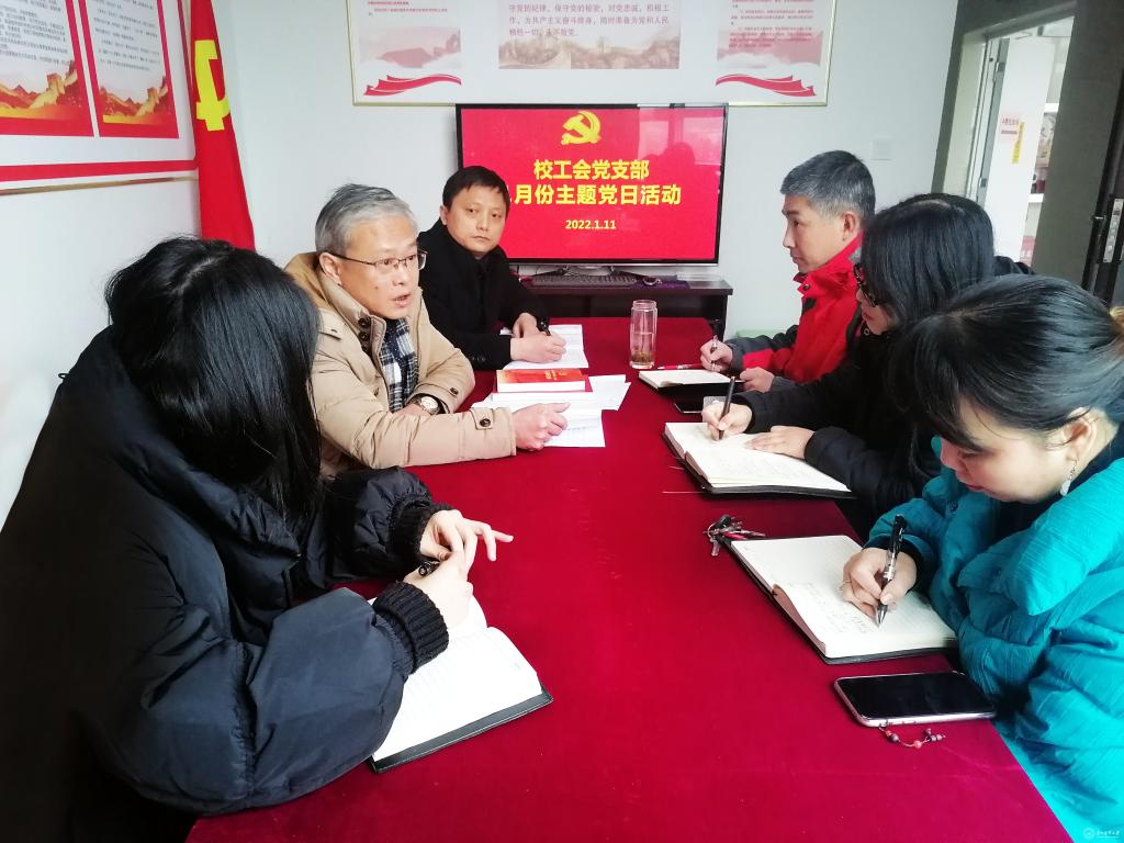 1月11日,校工会党支部在支部党员活动室开展“我谈学习党的十九届六中全会精神心得”主题党日交流活动。活动由支部书记钟良主持,支部全体党员参加并交流学习心得。