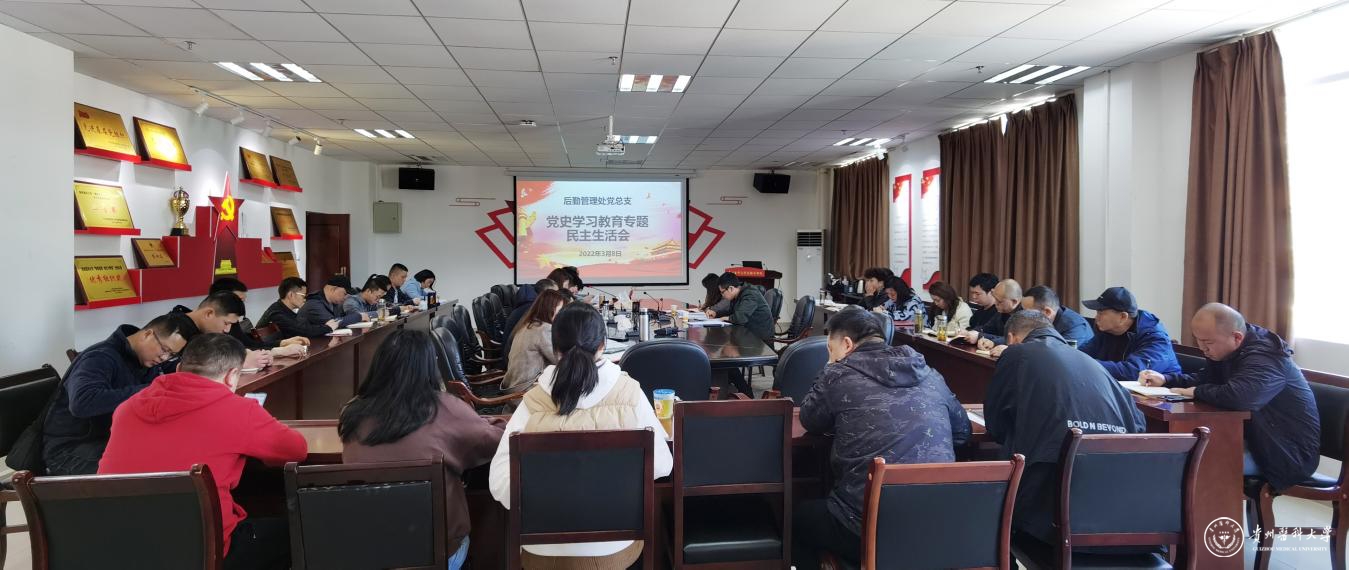 按照学校党委的部署要求,3月8日,后勤管理处党总支在南校区颂雅楼后勤会议室召开了党史学习教育专题民主生活会,校督导组组长陈伟带队到会指导。会议由党总支书记张玲玲主持,党总支班子全体成员出席,全体党员列席会议。
