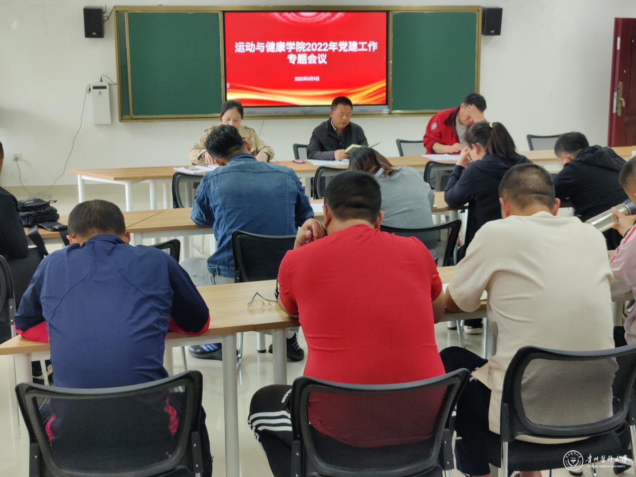5月9日,运动与健康学院在体育馆三楼会议室召开2022年党建工作专题会议,会议由院党委书记姚思勤主持,学院副科级以上干部、教研室负责人及各党支部委员参加。