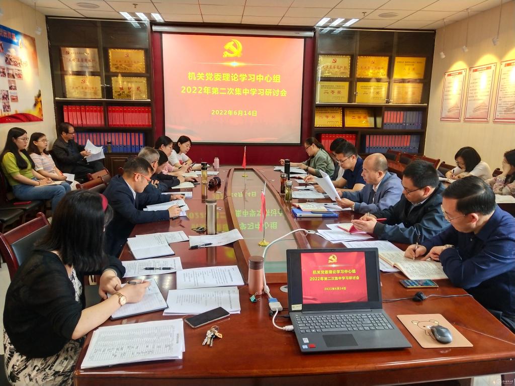 6月14日,机关党委在南校区知雨楼8-18召开2022年度第二次理论中心组学习研讨会。机关党委委员、机关各党支部书记、机关党支部全体党员和基层党支部党员代表参会。会议紧紧围绕“衷心拥护‘两个确立’、忠诚践行‘两个维护’,深入学习宣传贯彻省第十三次党代会精神”开展学习研讨,会议由机关党委书记邓舟主持。
