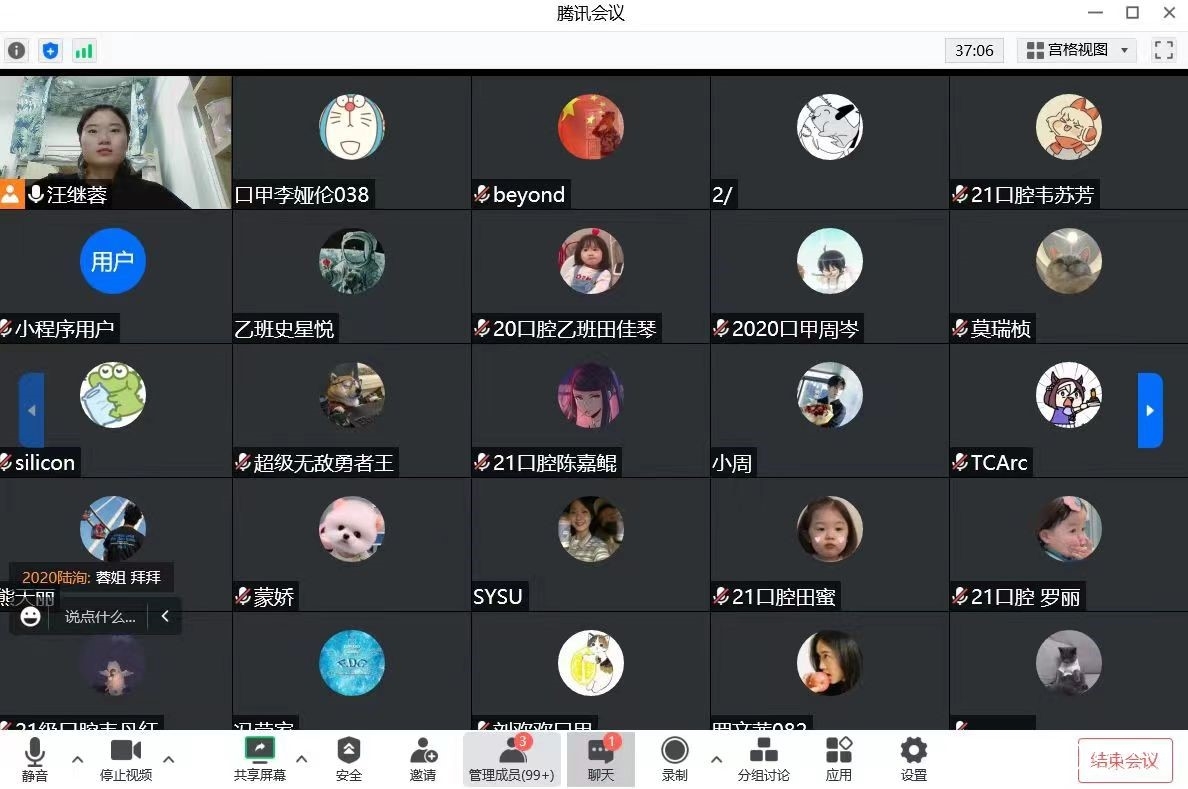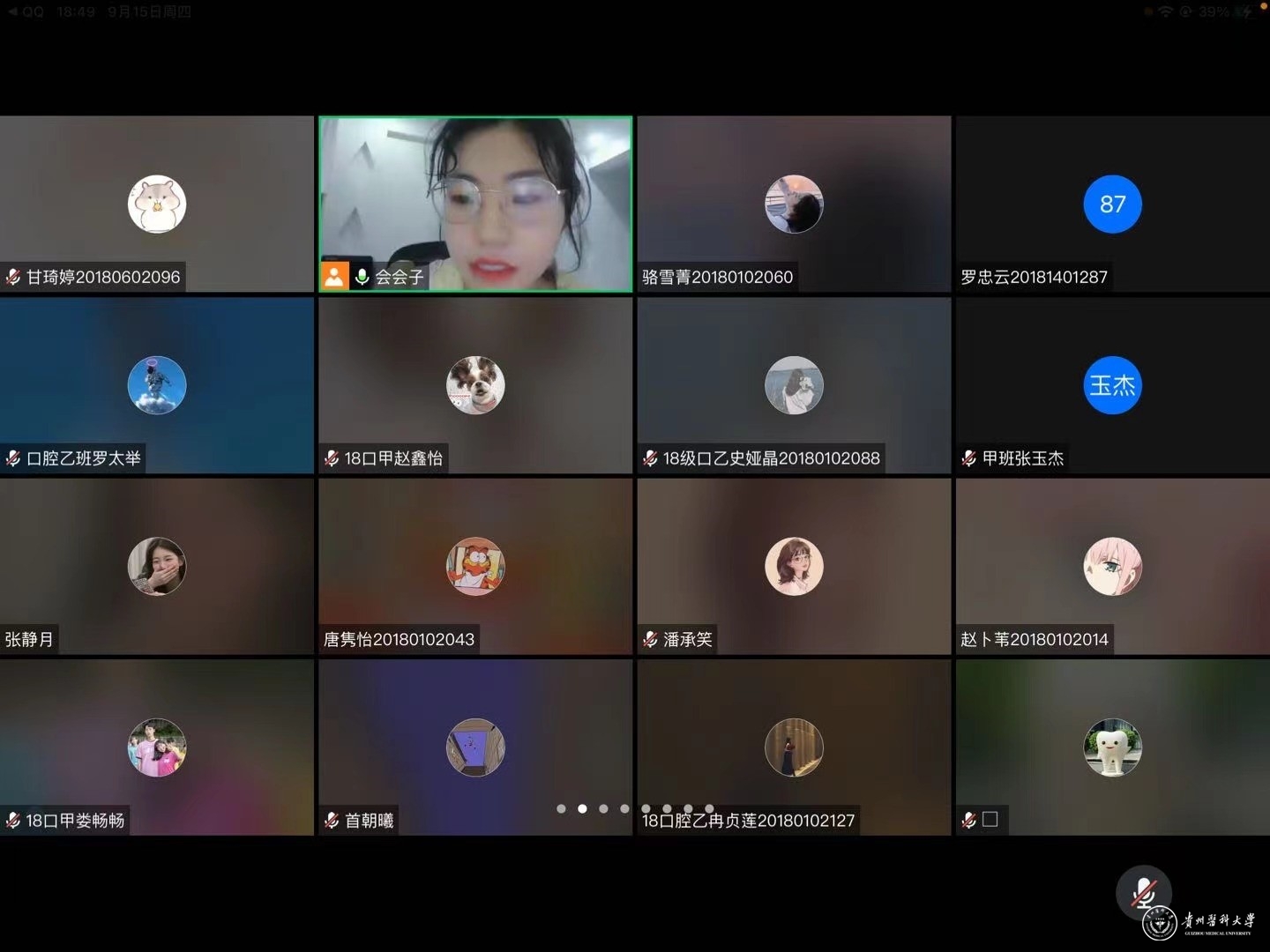 9月13至15日,口腔医学院各班开展了疫情防控教育主题班会。主题班会以线上形式开展,各班辅导员主持。