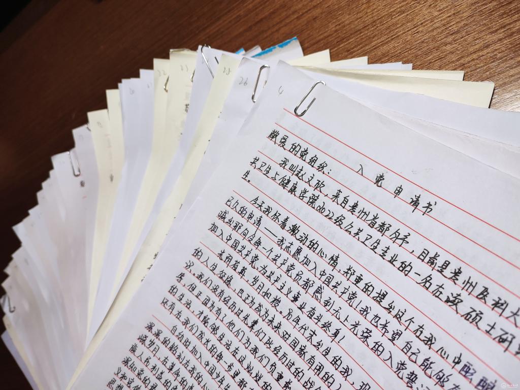 组织上入党一生一次,思想上入党一生一世。赵文欣、付宏煜、张应凯等同学的举动,是参与此次疫情防控工作的公卫学子追求进步、红心向党的生动缩影。据了解,疫情发生后,先后有29名奋战在疫情防控一线的“先锋战士”向所在党组织提交了入党申请书,他们用实际行动书写着使命担当和入党决心。