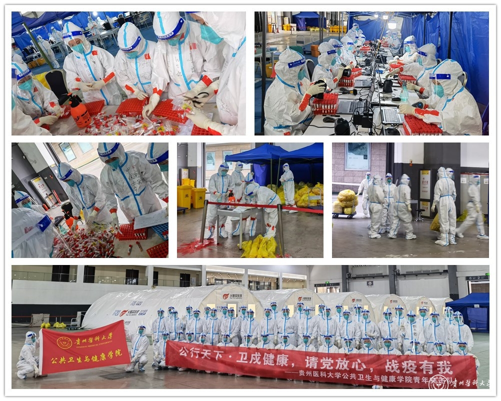 公共卫生与健康学院支援会展中心气膜实验室的师生志愿者自9月26日出征以来,在副院长李军、教师董令的带领下,经过17个夜以继日的艰苦奋战,圆满完成实验室物质配送、标本验收、标本拆装、标本信息录入、医疗废弃物处置等工作任务,为保障实验室高效开展核酸检测工作贡献了贵医公卫力量。