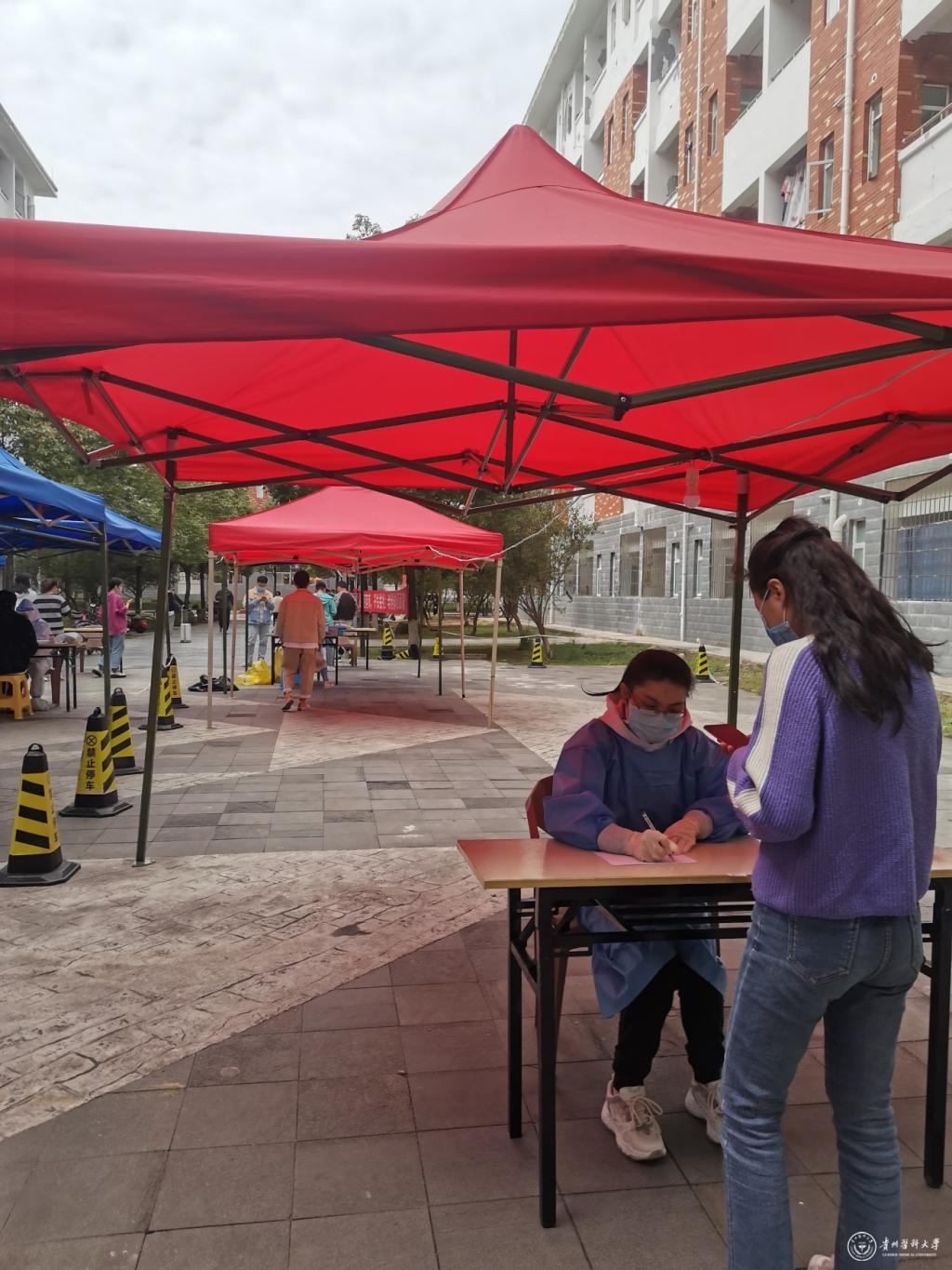 各尽所能、志愿支援,积极投入社会抗疫服务。疫情的到来,不仅让我们看到老师们兢兢业业,全力以赴,而且也看到同学们不遗余力、无私奉献的背影,抗疫期间,无论在哪,无论是谁,都为这场战疫的胜利,尽了自己的一份力量。居家办公教师主动请战,参与居住地核酸检测工作、分发抗原试剂等。心理学专业的教师利用专长,积极参与“贵州省教育系统疫情心理援助平台”志愿工作,为全省师生和广大群众提供心理援助,积极疏导师生和群众因为疫情带来的恐慌、焦虑等不良情绪。