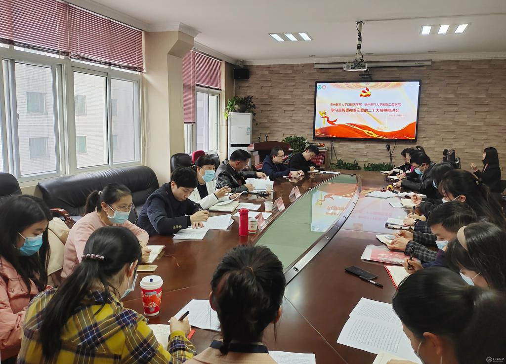 会上,班子成员郑慧颖、董强、刘洪静分别结合分管领域工作实际,就下一步推进学习宣传贯彻落实党的二十大精神建言献策。各党群工团各部门主要负责人、各党支部书记也分别结合教育教学、学生管理、科研创新、人才培养、医疗服务等具体工作,围绕推进党的二十大精神指导实践、融入实际工作等内容展开热烈讨论和深入交流。