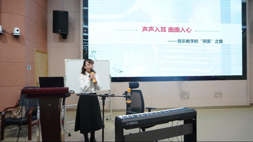 贵州大学青年骨干教师李小溪,以“教学设计创新与示范课堂展示”为主题,分享了自己音乐课程教学从成长、蜕变到突围的青教赛参赛经历,以及她把思政元素融入到音乐课程的设计与实施过程。最后,结合钢琴弹奏,展示了富有感染力的《即兴伴奏》现场教学环节。