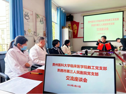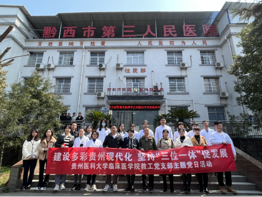 2月27日,临床医学院教工党支部、研究生党支部携手贵州省励志公益发展中心赴黔西市第三人民医院(钟山卫生院)开展“建设多彩贵州现代化 坚持‘三位一体’促发展”党支部主题党日活动和“贵在有你·践行初心志医生为民·义诊健康行”志愿服务活动。黔西市政协党组书记、主席余刚跃,临床医学院党委副书记王筑山带队,贵州省励志公益发展中心、黔西市政协、黔西市第三人民医院有关领导参加活动。