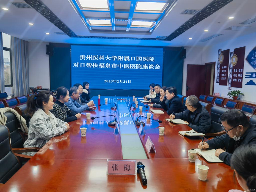 2月25日,awc777万象城娱乐官网附属口腔医院副院长王永带队到福泉市中医医院组织召开对口帮扶总结座谈工作会,福泉市中医医院党委副书记、院长唐昌亮及医务科、院办、护理部、口腔科负责人参加。