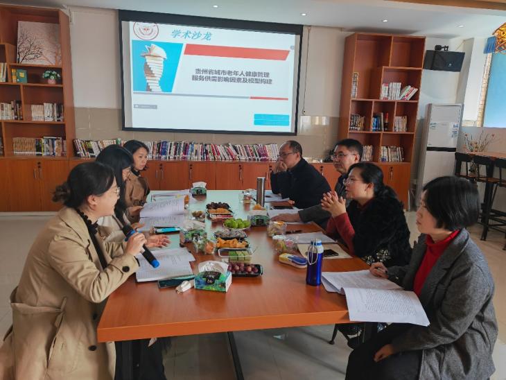 3月16日,医药卫生管理学院以“贵州省城市老年人健康管理服务供需影响因素及模型构建”为主题,在学院师生阅览室召开学术沙龙活动。贵州中医药大学冯毅翀教授、贵州省人民医院信息处处长贺松副教授线上参会,学院党委书记廖兴江、医药经济管理学教研室全体教师、研究生参加,会议由周戈耀教授主持。