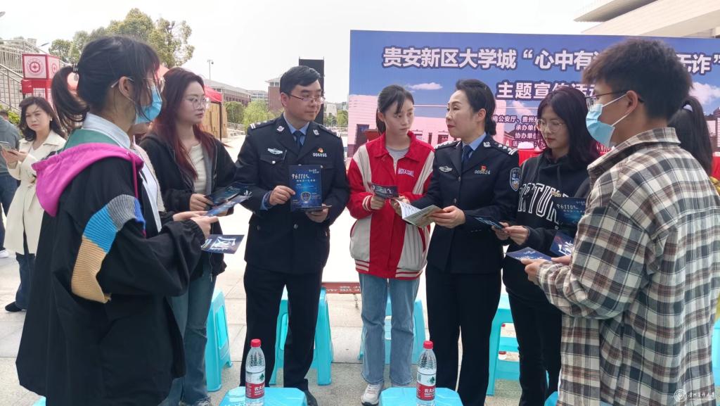 为进一步提升高校师生法治意识和法治观念,切实筑牢防范电信网络诈骗犯罪的坚固“高墙”。3月21日,由省公安厅、省教育厅、贵阳市公安局、贵安新区公安局主办的贵安新区大学城“心中有法 校园无诈”主题宣传活动在贵州财经大学举行。万象城官网师生代表参加。