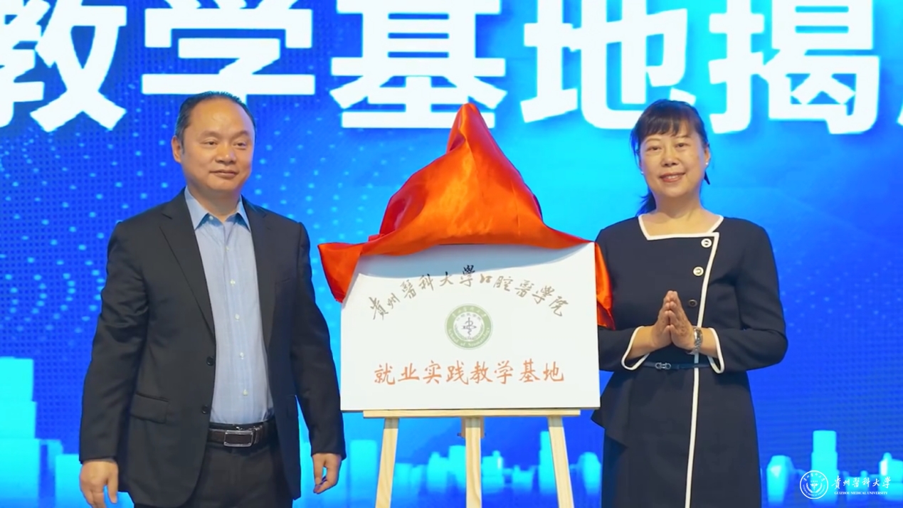 会上,张军梅与方玉柱为“awc777万象城娱乐官网口腔医学院就业实践教学基地”揭牌。