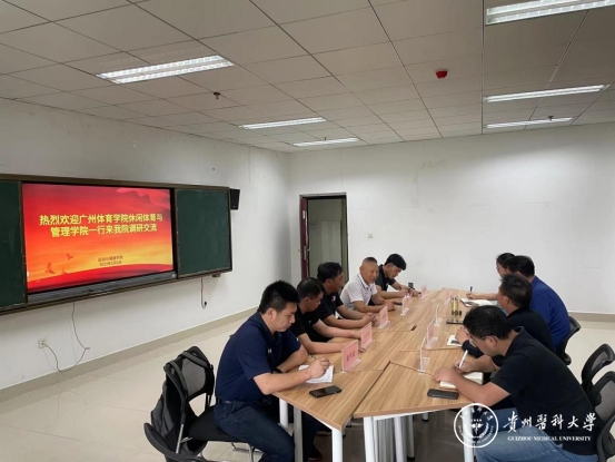 5月6日,广州体育学院休闲体育与管理学院党委书记廖雄忠带队到运动与健康学院开展体育学科及专业调研交流。学院党政领导班子参加会议,会议由学院党委书记姚思勤主持。