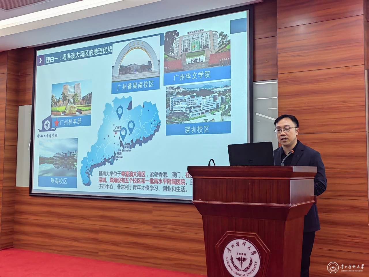 暨南大学医学部医学教育管理办公室主任孙立从暨南大学概况、暨南大学医学部教育教学情况以及选择报考暨南大学医学部八大理由三个方面进行介绍,对同学们较为关心的考试、复试、毕业、规培、就业等问题逐一进行解答。