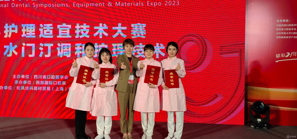 近日,中国(西部)口腔护理技能竞赛“‘手把手'口腔专科护理适宜技术大赛——口腔科水门汀调和护理技术”在成都举行,全国40多个医院代表队共75名选手参赛。附属口腔医院护理部董银银、修复种植科石飞、口腔正畸科李金芸、牙体牙髓科罗丹丹参赛。