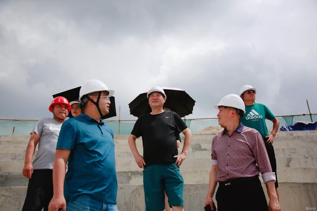 学院一行到综合训练馆、田径场、羽毛球场地、滑板场地等场所查看,询问设施建设进度。考察过程中,基建处副处长孙斌和项目建设单位负责人详细介绍了项目进展情况并交换意见。