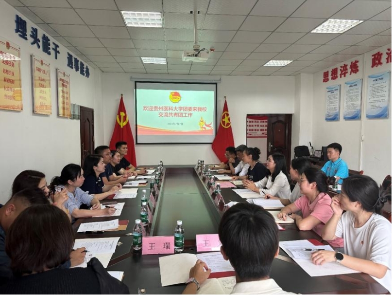 7月7日,万象城官网团委书记王妤煜带队赴遵义医科大学团委、遵义市红花岗区卫生健康局开展工作交流。校团委全体工作人员参加。