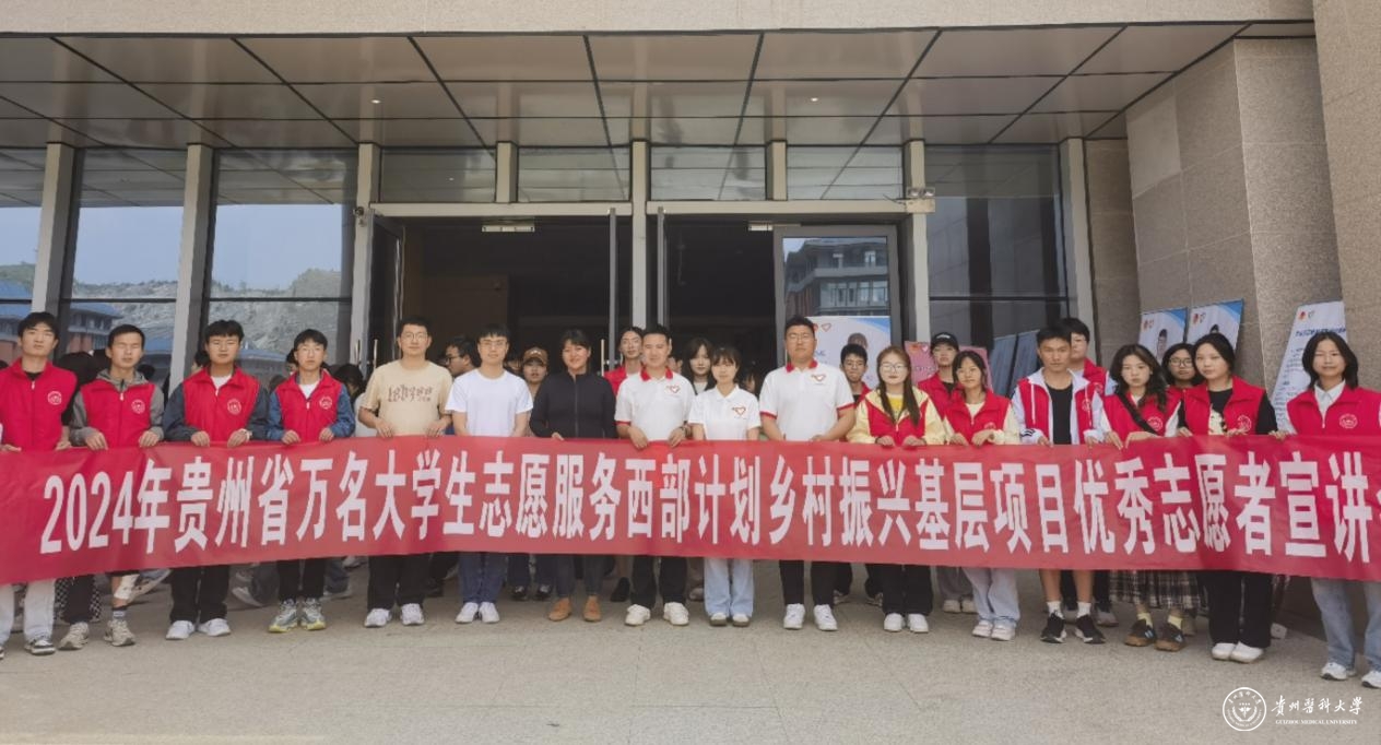 4月14日,贵州省大学生志愿服务西部计划志愿者事迹宣讲会在云漫湖校区道德讲堂举行。贵州省志愿者行动指导中心(省青少年维权中心)工作人员李明罡、韩尚德、宣讲志愿者以及500余名学生参加,校团委副书记王瑞主持。