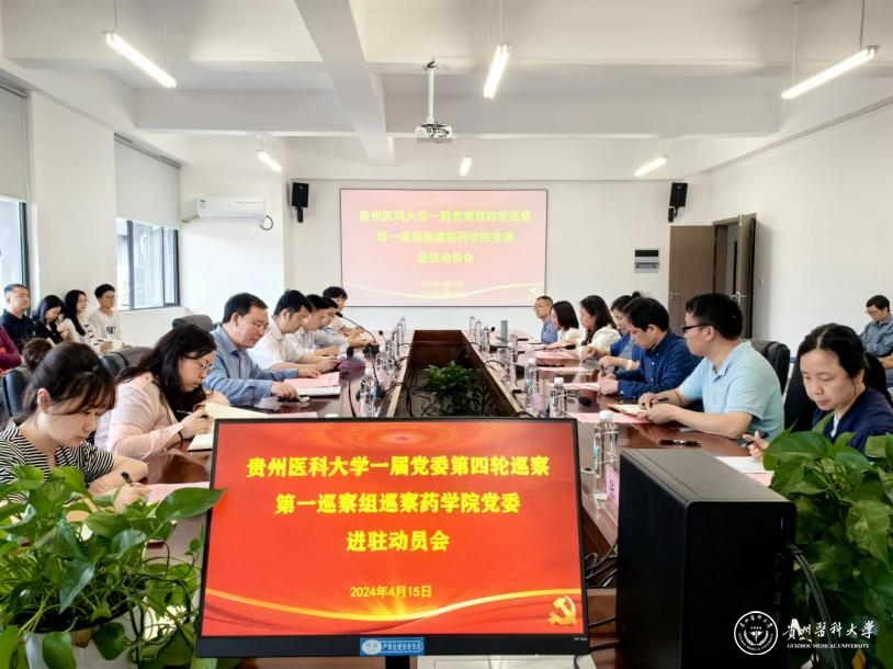 最后,高秀丽代表药学院党委表态发言。表示学校一届党委第四轮巡察工作动员部署会精神和巡察工作通知,全面概括了此次巡察工作的重点和要求,强调了本次巡察对于增强药学院党建引领业务工作高质量发展具有重要意义。药学院全体教职工要切实提高政治站位、齐心协力,全力配合做好巡察工作,做到积极配合、主动反思、认真总结,诚恳接受巡察工作中提出的意见和建议,及时整改落实,以实际行动推动“贵州省一流药学人才培养高地”建设、“百年贵医”建设高质量发展做出积极贡献。