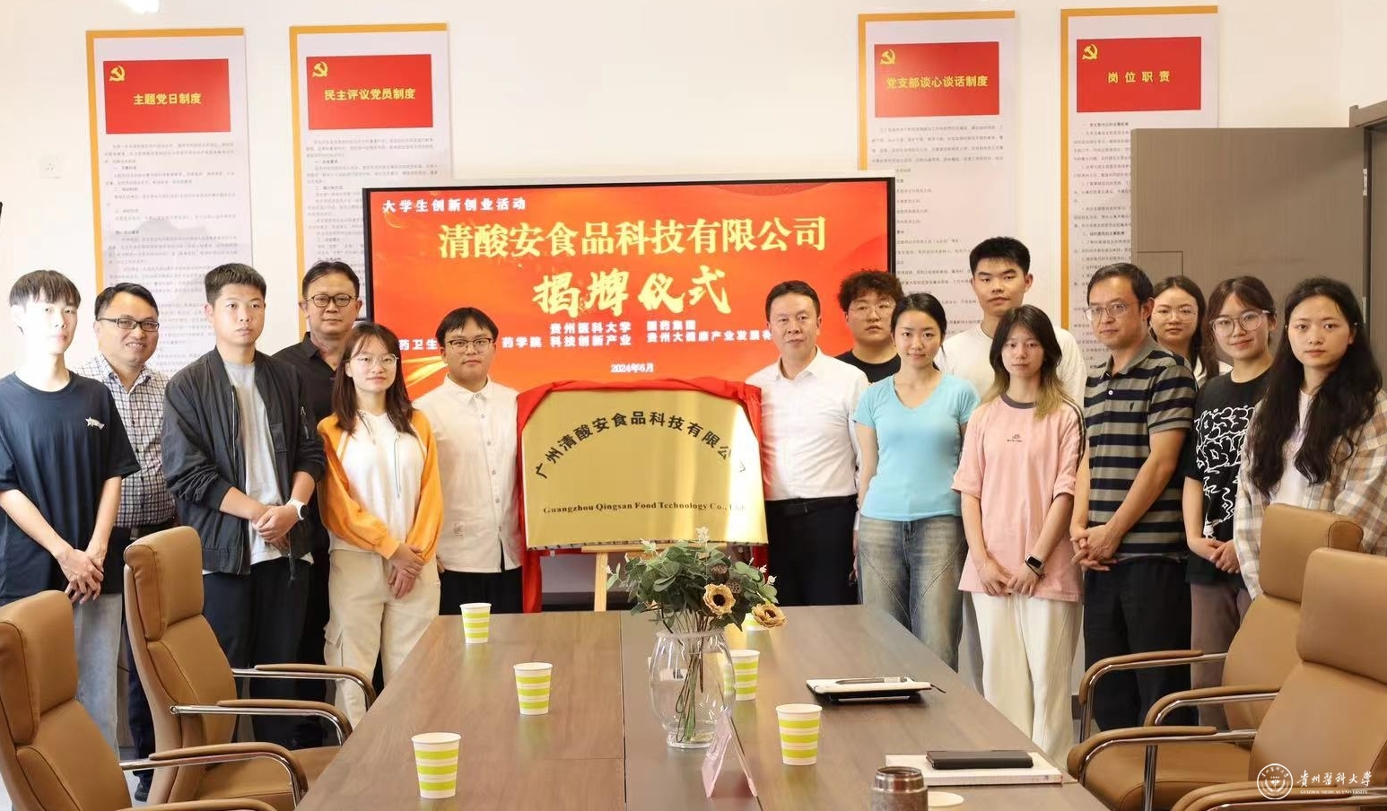 6月24日,广州清酸安食品科技有限公司在万象城官网医药卫生管理学院正式揭牌。校党委副书记汤磊、科技创新与产业发展处及相关学院师生代表20余人参加揭牌仪式。
