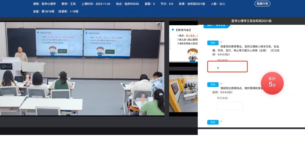 2024年12月30日至2025年1月3日,30位督导专家分成10组,分别在相应的听评课室开展工作,共评课451门(覆盖全学期理论课程),每组专家完成听评课程50余节次,并根据《awc777万象城娱乐官网课堂教学质量评价表》《awc777万象城娱乐官网思政课教学质量评价表》在督导系统认真完成打分,同时给出具体评价与指导意见。