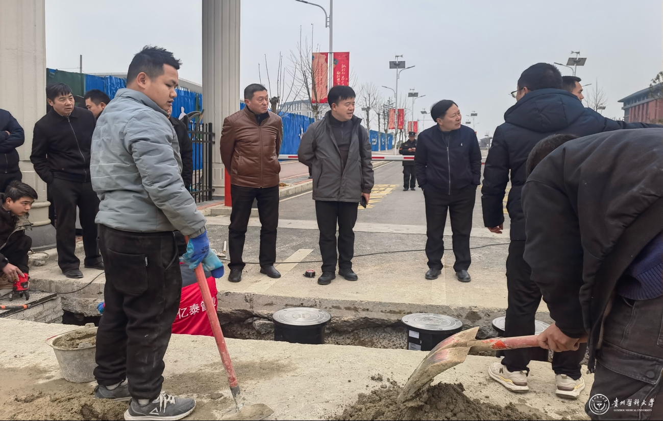 1月20日,副校长洪峰率队在云漫湖校区开展春节节前校园安全大检查,慰问坚守一线的工作人员。基建处、保卫处、后勤管理处、各参建单位等部门负责人参加。