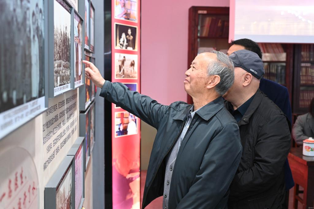 走进校史馆,“五老”代表们重走了学校办学发展之路,共同回忆一段段的光辉岁月,从建校初期的阳明路庙宇校舍、六广门外“草棚大学”、湘雅村校园到北京路校园、花溪大学城校区再到如今的云漫湖校区,每一个历史阶段都在精心设计的展厅中生动呈现。珍贵的照片、详实的史料、熟悉的教具、重现的影像,吸引着他们的目光,时而驻足凝视,时而相互交流,充满对往昔岁月的真情记忆,他们指着墙上的老照片,分享了许多校史资料中未曾记载的感人细节,向身旁的年轻老师讲述起学校在不同历史时期与国家同呼吸、共命运的故事,言语间满是自豪与欣慰。