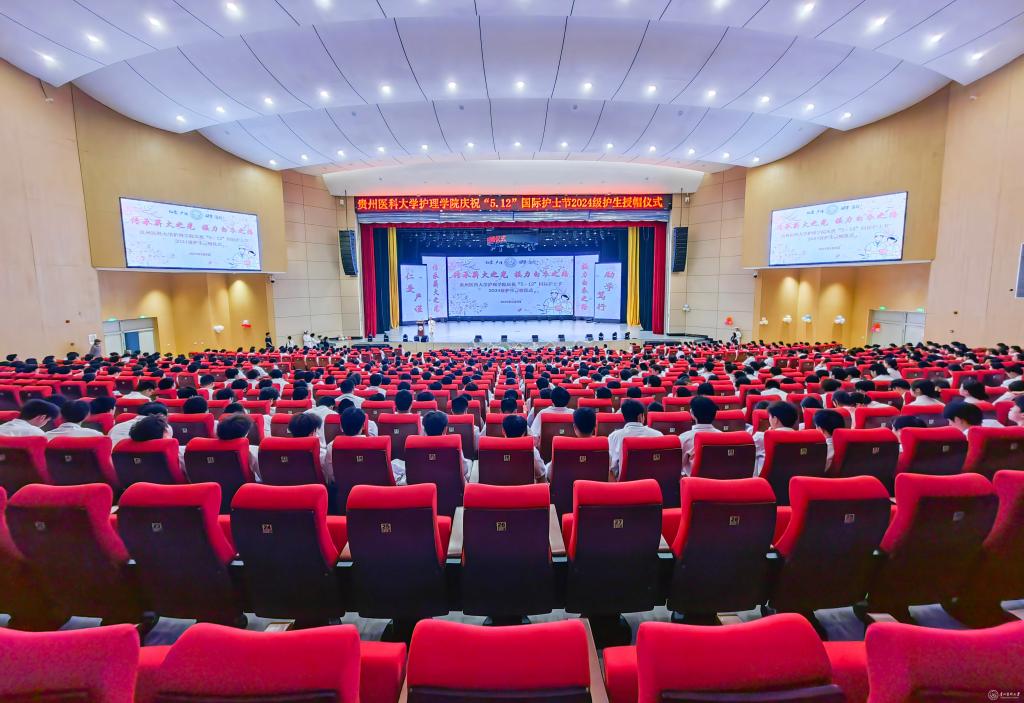 5月8日,为传承南丁格尔精神,激励护理学子逐梦前行,在第114个国际护士节到来之际,护理学院在云漫湖校区礼堂隆重举办以“传承薪火之光,接力白衣之路”为主题的2025年“5•12”国际护士节庆祝活动暨2024级护生授帽仪式。活动邀请中山一院贵州医院(贵医附院贵安院区)护理部副主任汤晋、贵州省职工医院护理部副主任周小梅等24位优秀护理前辈为715名护生授帽传烛。学院领导班子、护理学院教职工及2024级学生参加本次授帽仪式,仪式由院长王秀红主持。