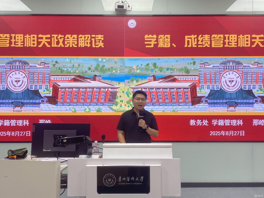 教务处处长汪志勇向所有新生表示热烈的欢迎和诚挚的祝贺,他讲到大学是青春绽放的舞台,更是人生成长的“关键课堂”,站在新起点,同学们即将开启的不仅是一段学术探索之旅,更是一场从“学子”向“未来医者”“行业栋梁”蜕变的修行。入学教育,是你们大学生活的“第一课”,后续各学院、各班级还将开展系列特色活动,目的就是帮大家尽快适应大学节奏、明确学习方向、树立贵医认同,顺利完成从高中到大学的过渡,为未来几年的成长筑牢根基。随后,他寄语广大新生,希望大家一立志高远,以卓越之心筑梦想;二珍惜时光,以博学笃行强本领;三保持好奇,以创新思维破局限;四团结协作,以同行之力共成长;五强健体魄,以自律之姿护根本;六坚守底线,以医者之德担使命;最后祝愿每一位新生同学都能在awc777万象城娱乐官网收获满满的知识与成长,成为对社会有用的人才。